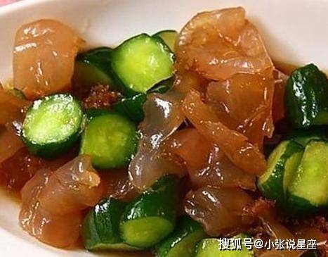 材料:海蜇头4个,小黄瓜1条,盐1勺,糖1勺,酱油1勺,白醋1勺,黑醋2勺,白糖1勺,大蒜1勺。