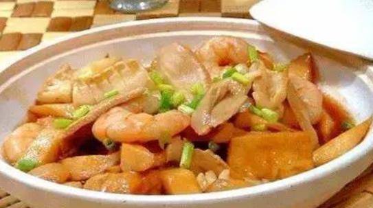 3.炒出香味后,将新鲜带子炒熟;半熟时用蚝油、酱油、少许糖拌匀。将炸好的肉碎和鲜带子备用;