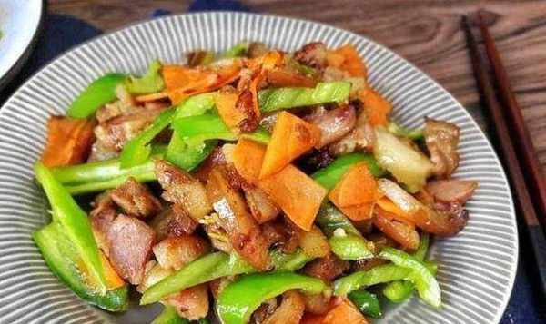 3.30秒后,加入辣椒炒30秒。30秒后,加入猪头肉,翻炒均匀即可食用。