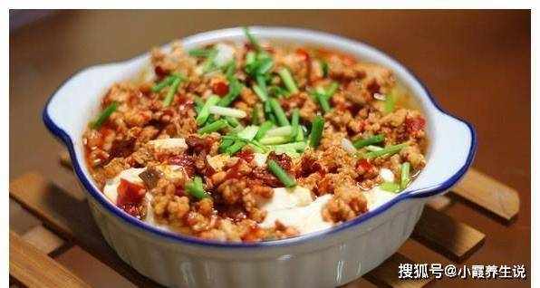 材料:软豆腐1块,肉碎,油、盐、酱油、料酒、生粉、葱花适量。