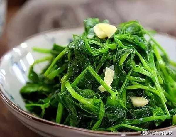 第二步:锅中倒入适量油烧热,加入葱花和蒜末炒香。第三步:将豌豆尖放入锅中翻炒几下。