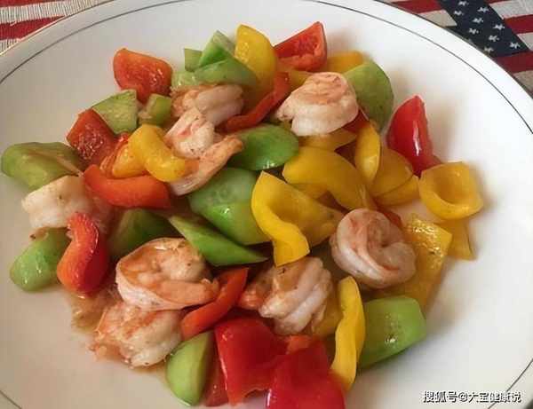 配料表:虾仁、红黄椒、黄瓜、油、料酒、盐、味精;