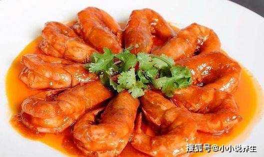 虾仁捞出,留底油,加入蒜茸、番茄酱、糖炒香。