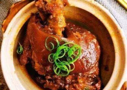 猪膝1个、洋葱半个、八角2个、肉桂1个、月桂叶3个、肉豆蔻3个、孜然少许、胡椒粉少许、当归少许、酱油-2勺,老抽-2勺,冰糖-2勺,葱姜蒜-适量,盐-少许
