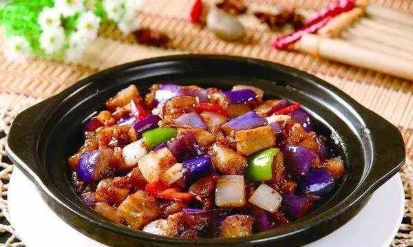 2.锅内倒入植物油烧热,加入茄条边不断翻炒,然后加入姜末、蒜末、盐和少量水,烧开后转小火煮10分钟左右分钟,撒上葱花和味精调味,用芡汁勾芡即可。