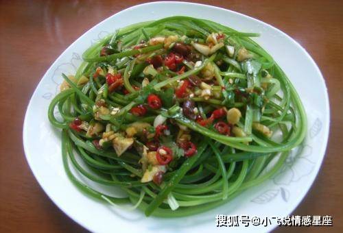 材料:蒜苔、盐、油、生抽、辣酱、香油、醋