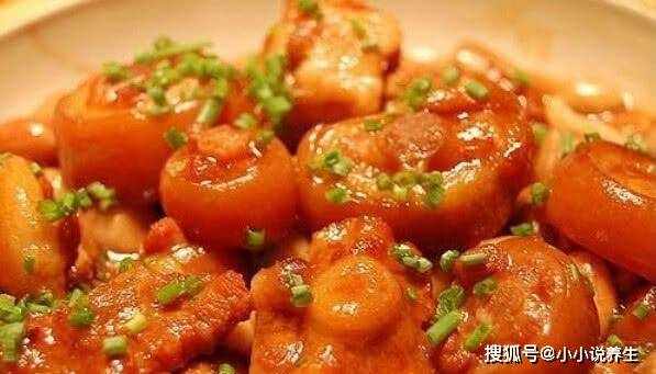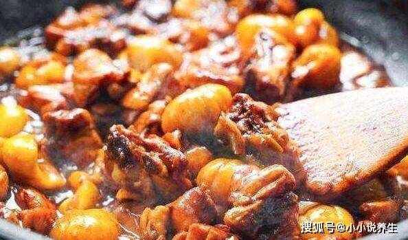 5、倒入去皮的栗子,小火炖20分钟。撒适量精盐,拌匀,收汁出锅。