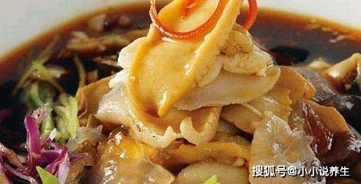 成份:黄貂鱼、海肠、扇贝肉、鲍鱼、海螺、香菜、黄瓜、辣椒油、海鲜酱、蒜蓉、米醋