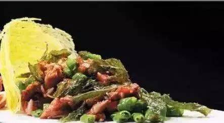 2、锅内留少许底油,烧热。下姜片炒香,再下青红椒丸子炒,再下炸好的脆骨和茶叶翻炒,加盐、味精、鸡精调味,倒入香油炒匀好吧,从锅和服务器中取出。
