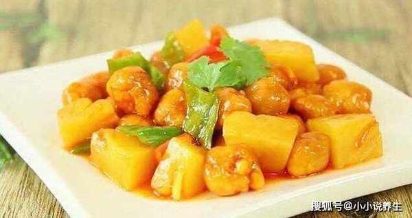 材料:新鲜菠萝适量、淀粉、食用油、新鲜猪里脊适量、盐、白醋、番茄酱、糖、青红椒