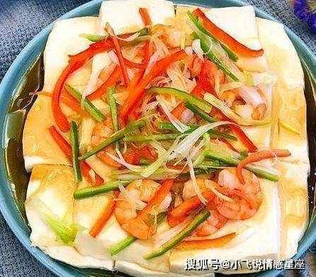 5、蒸好的豆腐放上葱丝、青红椒丝、鸡粉,淋上生抽,倒入热油即可上桌。