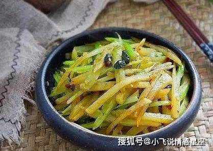 材料:芹菜2条、土豆1个、豆豉1勺、生抽1勺、盐1勺、姜末3克做法:1、土豆去皮洗净,切成细条,用水稍微泡一下,把星星洗干净。