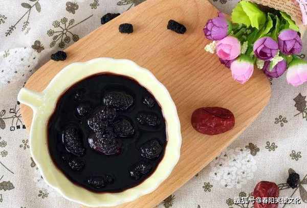 3.锅里加入4杯水,加入桑葚干、黑豆和红枣,用大火烧开,转小火煮40分钟
