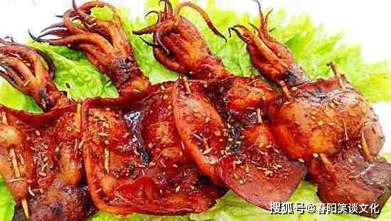 8十分钟后,取出鱿鱼,刷上准备好的酱汁。