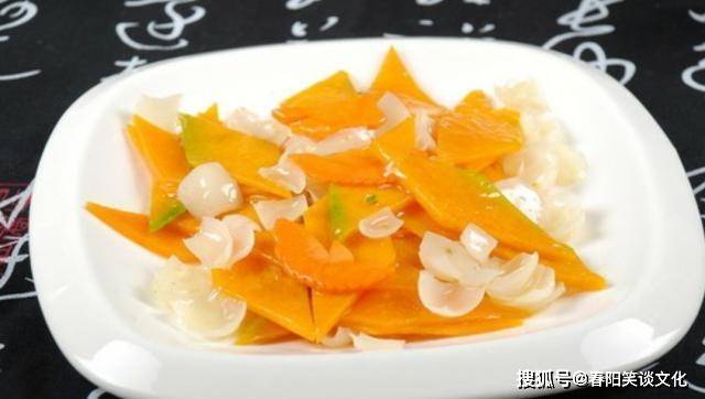 2.将金瓜洗净,去果肉和籽,切成约10厘米厚的薄片。