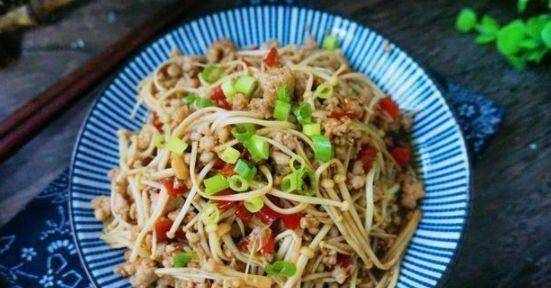 原料:金针菇300克,花椒2勺,肉末100克,酱油2勺,盐1克