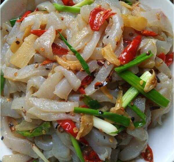 5、加入盐、糖、醋、辣椒油、花椒油、香油、鸡精、蒜、葱等调料拌匀