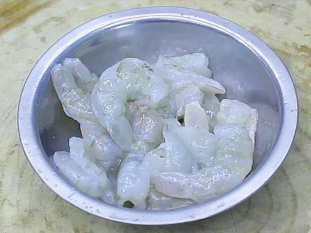 2.盆中加入适量的食盐、鸡粉、料酒抓拌均匀,再淋入一点水淀粉增加嫩滑的口感,放在一边腌制5分钟给虾仁码低味。