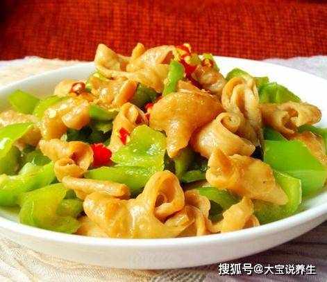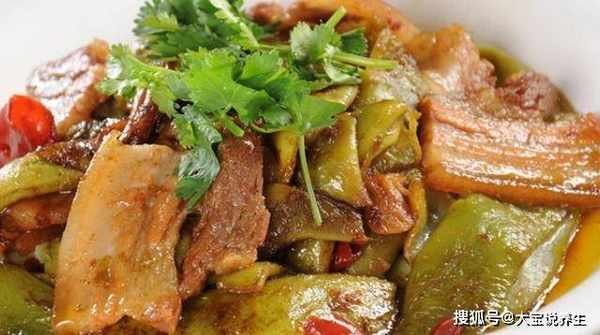 6。将肥肠煎9分钟,加入青椒,大火边炒边不断搅拌。