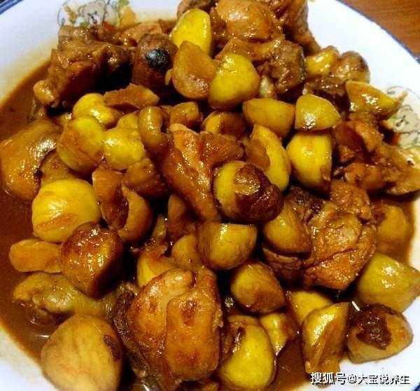 材料:鸡腿(整只鸡更好吃),栗子,葱,姜,料酒,酱油,盐,糖