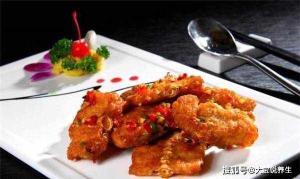 2.将腌制好的鱼片沾上生粉,炸至金黄,起锅即可食用。