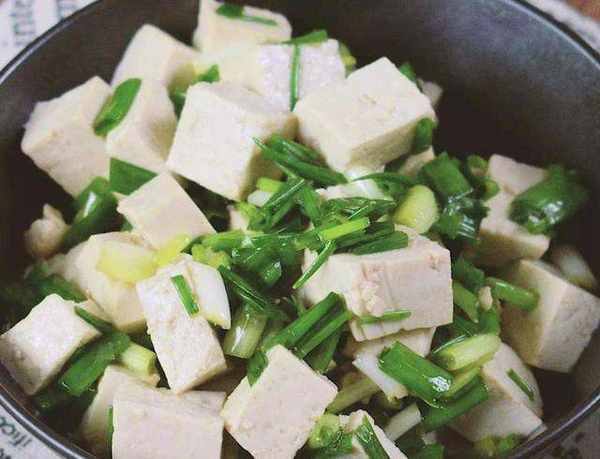 第四步:把搅拌碗里的汁倒在豆腐上,稍微搅拌一下就可以吃了。