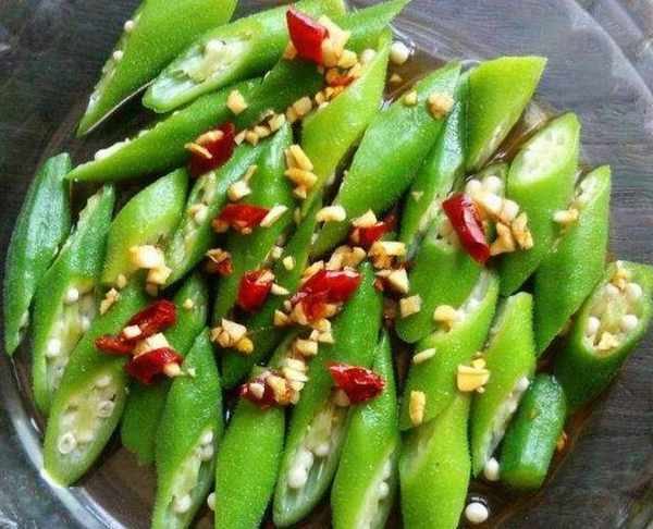 配料:秋葵,酱油,醋,糖,芝麻,大蒜,水,盐