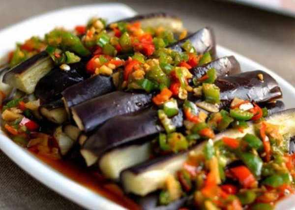 材料:茄子、香菜、大蒜、胡椒粉、盐、醋、香油、水