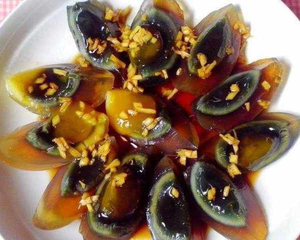 第四步:把皮蛋放在盘子里,然后把一碗混合汁倒在皮蛋身上,就可以吃了。
