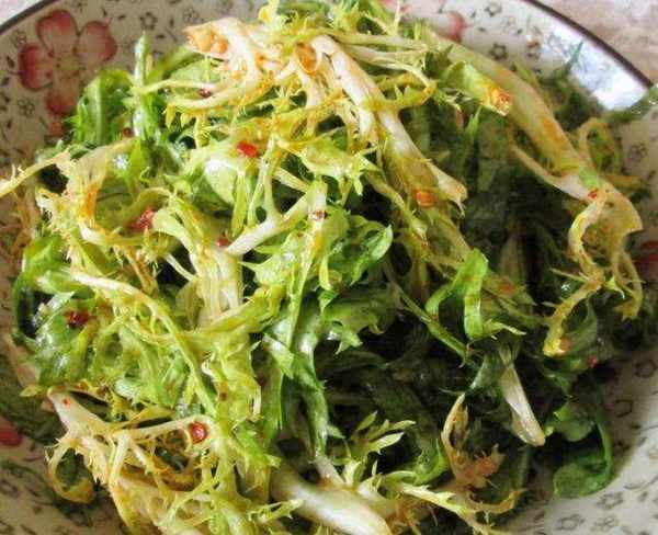 第一步:苦菊花去黄叶和根,切丝,用清水洗净,晒干备用。