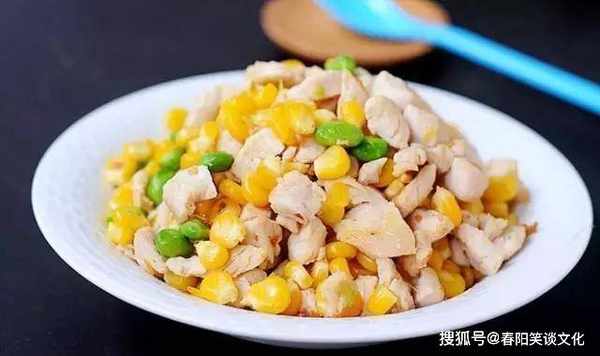 材料山药(250g)、玉米(150g)、鸡胸肉(250g)、豆瓣酱(1茶匙)、糖(1茶匙)、盐(1茶匙)。