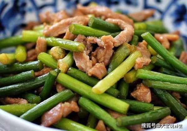 第六步:继续倒入蒜苗,撒上适量的盐,继续翻炒约1分钟,即可食用。