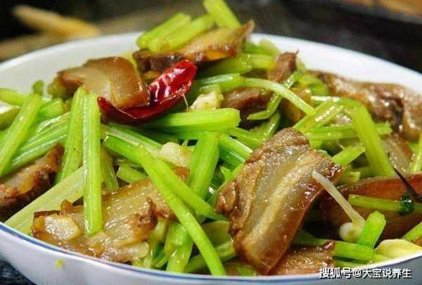 第五步:在平底锅中加热油。油烧开后,加入切好的葱花、姜丝和干辣椒炒香,然后倒入腊肉。第六步:腊肉炒至变色,倒入适量生抽炒匀,继续倒入芹菜,撒适量盐,炒匀即可食用。