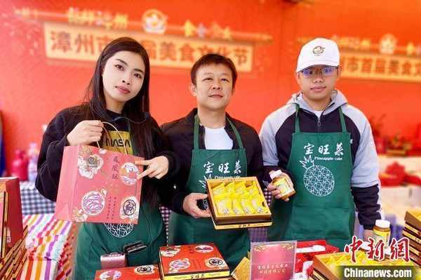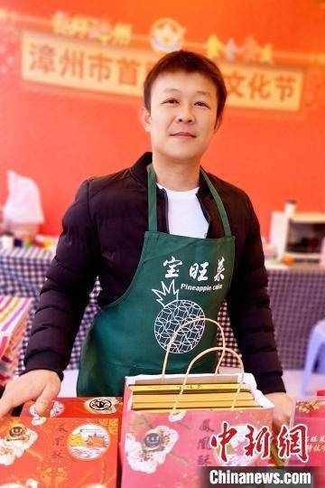 中新网漳州3月19日电 (廖珍妹)不久前举行的福建省漳州市首届美食文化节上,台湾青年汤有瑄带领团队参展,卖力推广凤梨酥、凤凰酥、雪花酥、凤梨干等台湾美食。