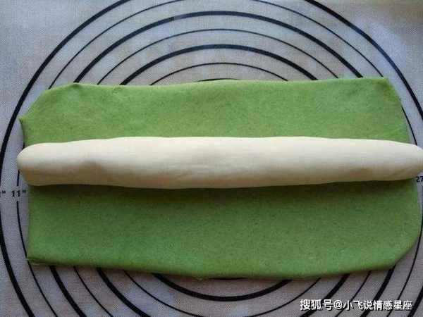 第六步:将菠菜洗净焯水,然后将打泡好的菠菜放入壁式绞肉机打成菠菜汁倒入碗中,继续倒入适量面粉,拌成薄片揉成绿色面团。第七步:将青皮和白皮揉成等长的条,继续把绿皮压扁,然后把白皮放在上面,用绿皮包住白皮揉成又硬又嫩的条面团。