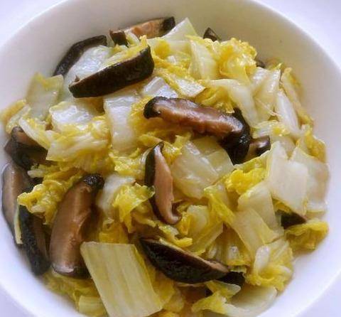 3.锅内倒入油,油热后放入葱蒜爆香。闻到香味后,先拌入小白菜梗和香菇。搅拌直到蘑菇消失,然后加入叶子。用盐调味并继续搅拌,直到蘑菇完全煮熟。