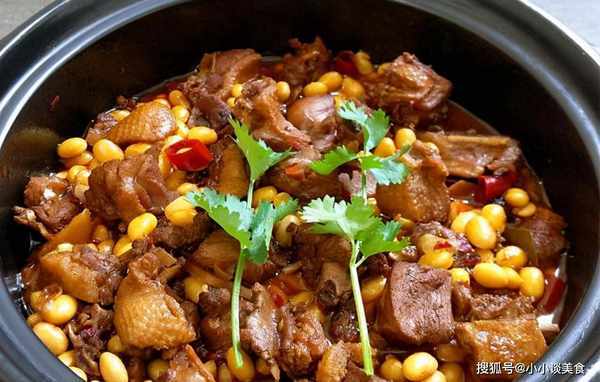 材料:牛胸肉500克,黄豆500克,酱油30毫升,盐少许,八角2粒,姜1片,蒜头2粒,冰糖3粒,油少许
