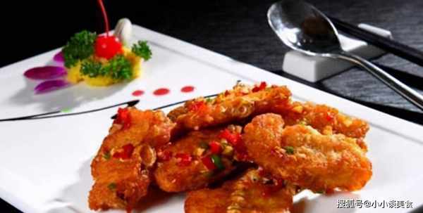 2.将腌制好的鱼片沾上生粉,炸至金黄,起锅即可食用。