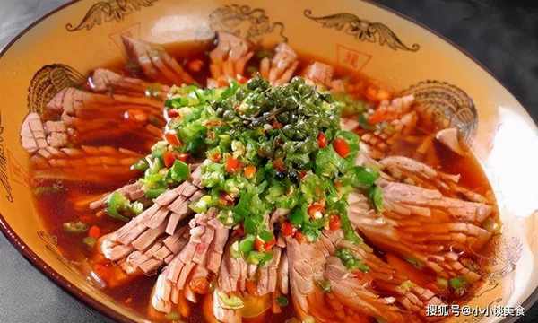 原料:牛筋600克,白酱油25克,红辣椒末20克,味精1克,香菜5克,香油25克,蒜末10克,精盐1克、大葱10克、生姜5克、八角2块、黄酒10克