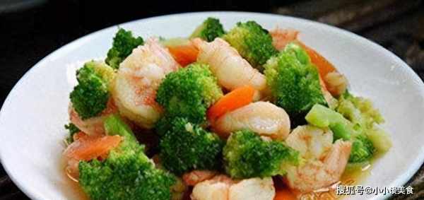 2.煎锅烧热油,加入西兰花翻炒约1分钟,待用。用小火将切碎的大蒜放入锅中炒熟,然后加入虾并用中火搅拌。