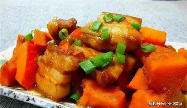 材料:猪肉、南瓜、葱、姜、八角、老抽、料酒。冰糖、酱油、盐
