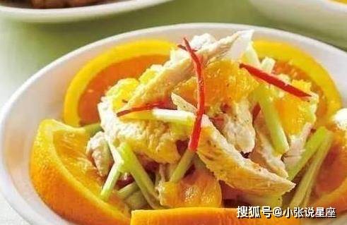 材料:去皮鸡胸肉1只,芹菜150克,橙子1个,红辣椒1个,柠檬汁适量。