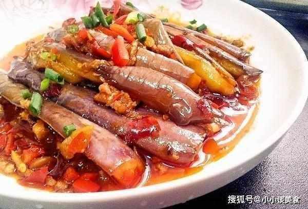 2.将茄子放入油中炸至变软;取出并放在一边;