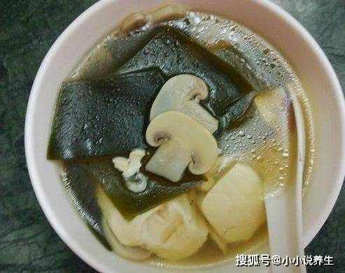 材料:软豆腐1块,海带结100克,白蘑菇50克,虾米10克,浓缩鸡汁1汤匙,鸡粉少许;