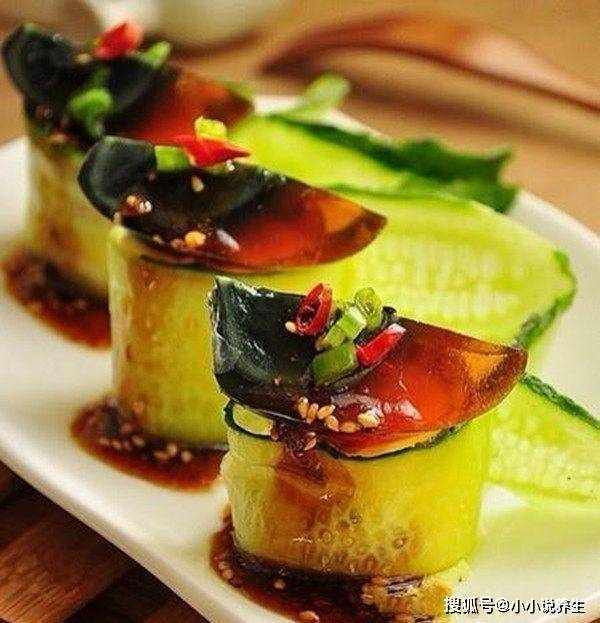 3)黄瓜两头剪一个小口,放在一起,中间放日本豆腐。