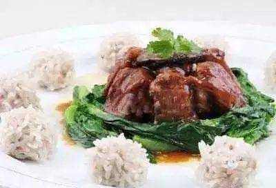 原料:排骨200克,猪肉馅150克,糯米100克,熟菜100克,荸荠50克。