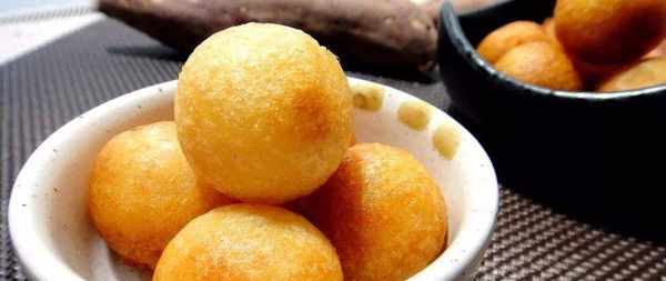 红薯洗净去皮切小块,蒸熟;保留一部分做馅,一部分捣碎做成土豆泥,和糯米粉、糖、奶粉混合,揉成球状,再做小面饼,之前的红薯切丁。面饼中间,揉成小丸子,盘子里刷一层油,放红薯丸子,喜欢吃葡萄干的也可以粘上葡萄干,隔水蒸熟。