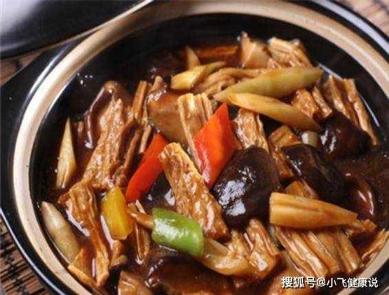 材料:干腐竹50克,干香菇4朵,红辣椒半个,胡萝卜半根,生抽1汤匙,老抽1汤匙,盐少许。