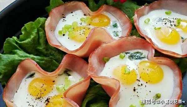 2.将火腿片放入模具中,加入鹌鹑蛋,撒上黑胡椒碎、紫菜碎和小红葱碎。