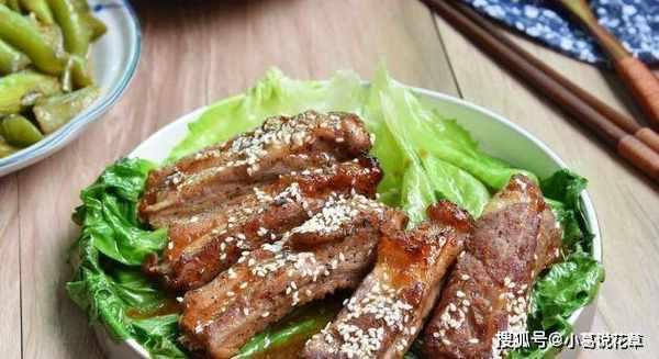 材料:排骨、料酒、黑胡椒酱、叉烧酱、蜂蜜、油、白芝麻